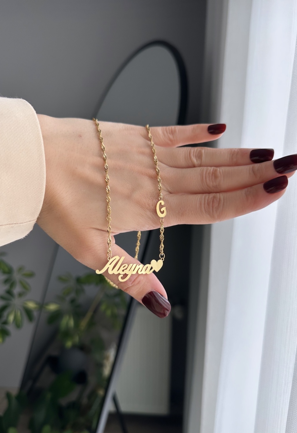 Çelik harf detaylı isimli kolye