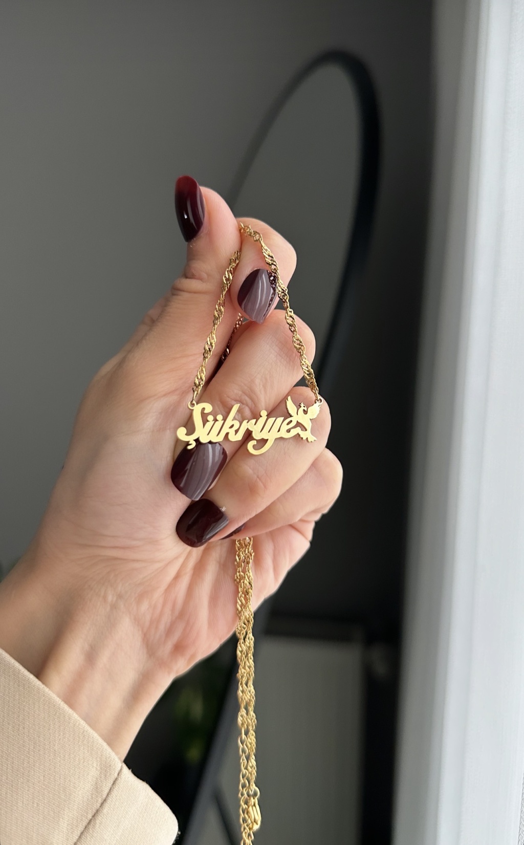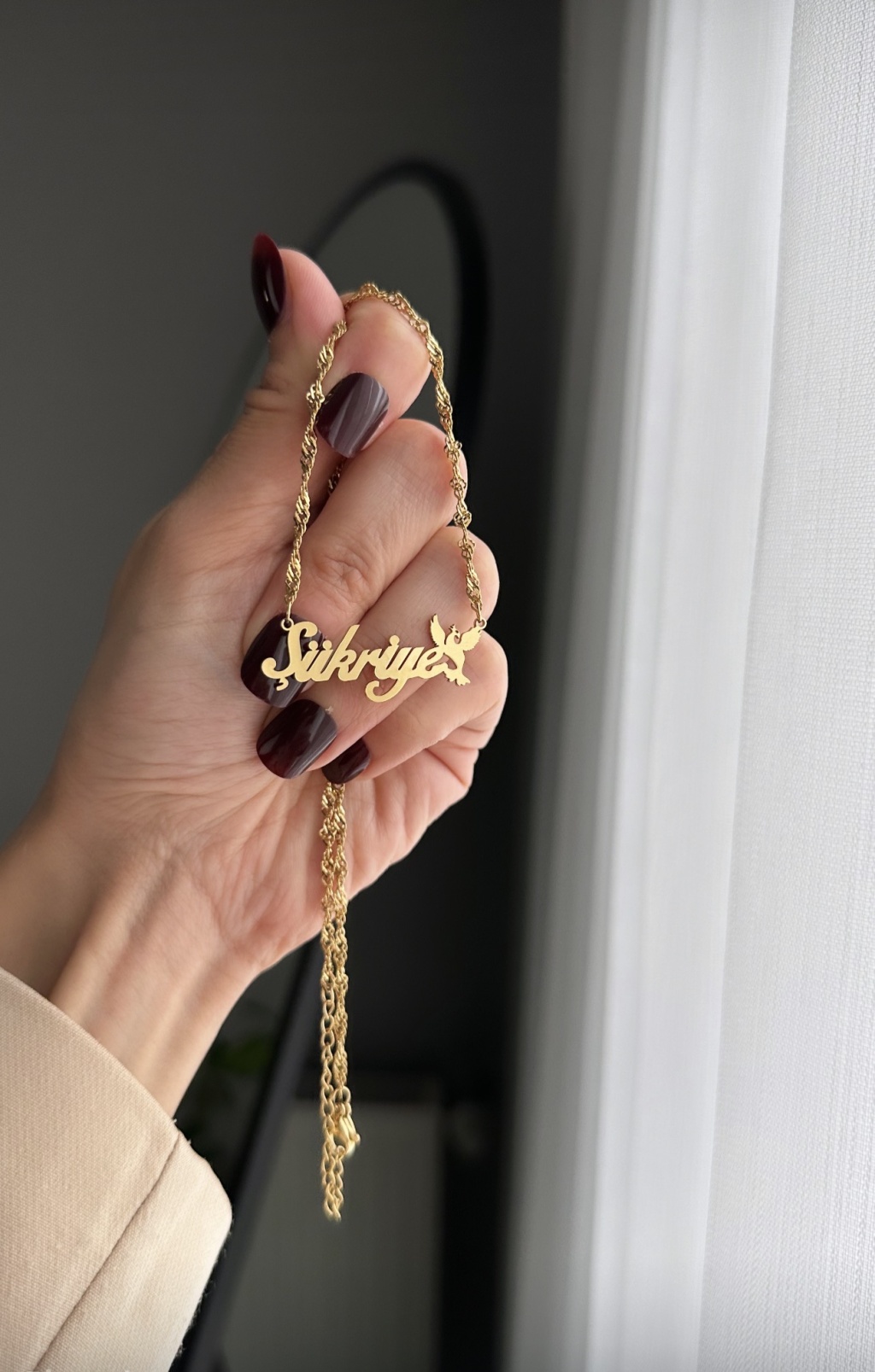 Çelik zümrüdü Anka kuş detaylı isimli kolye