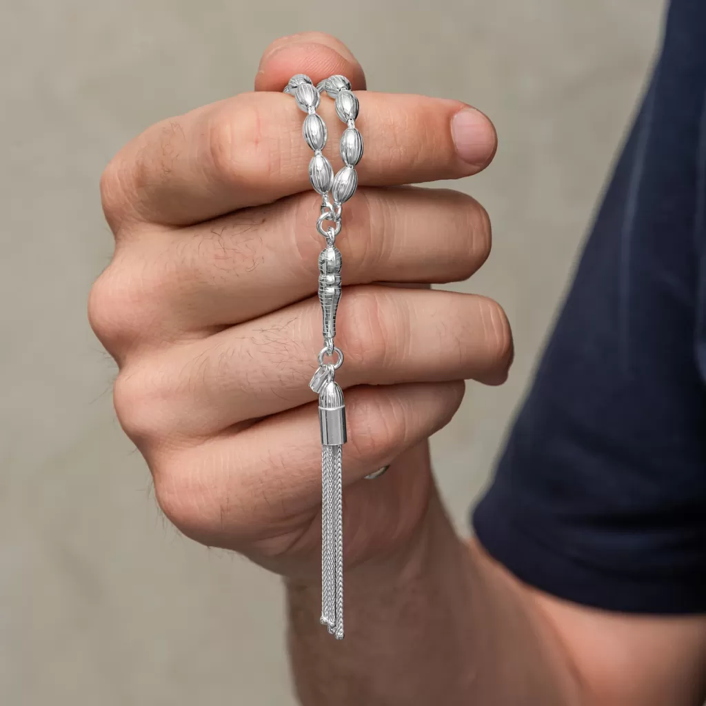 Gümüş Arpa Kesim Çizgili Erkek Tesbih