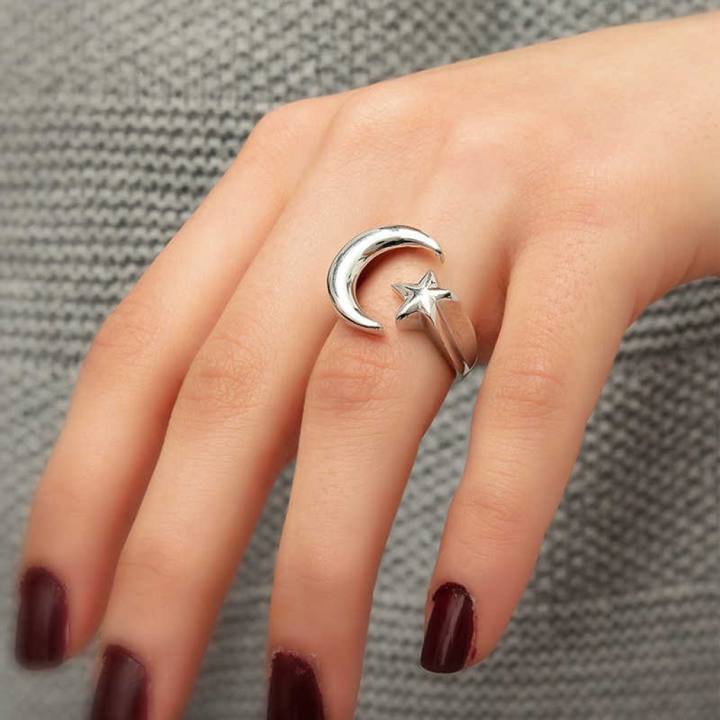 Gümüş Ay Yıldız Yüzük