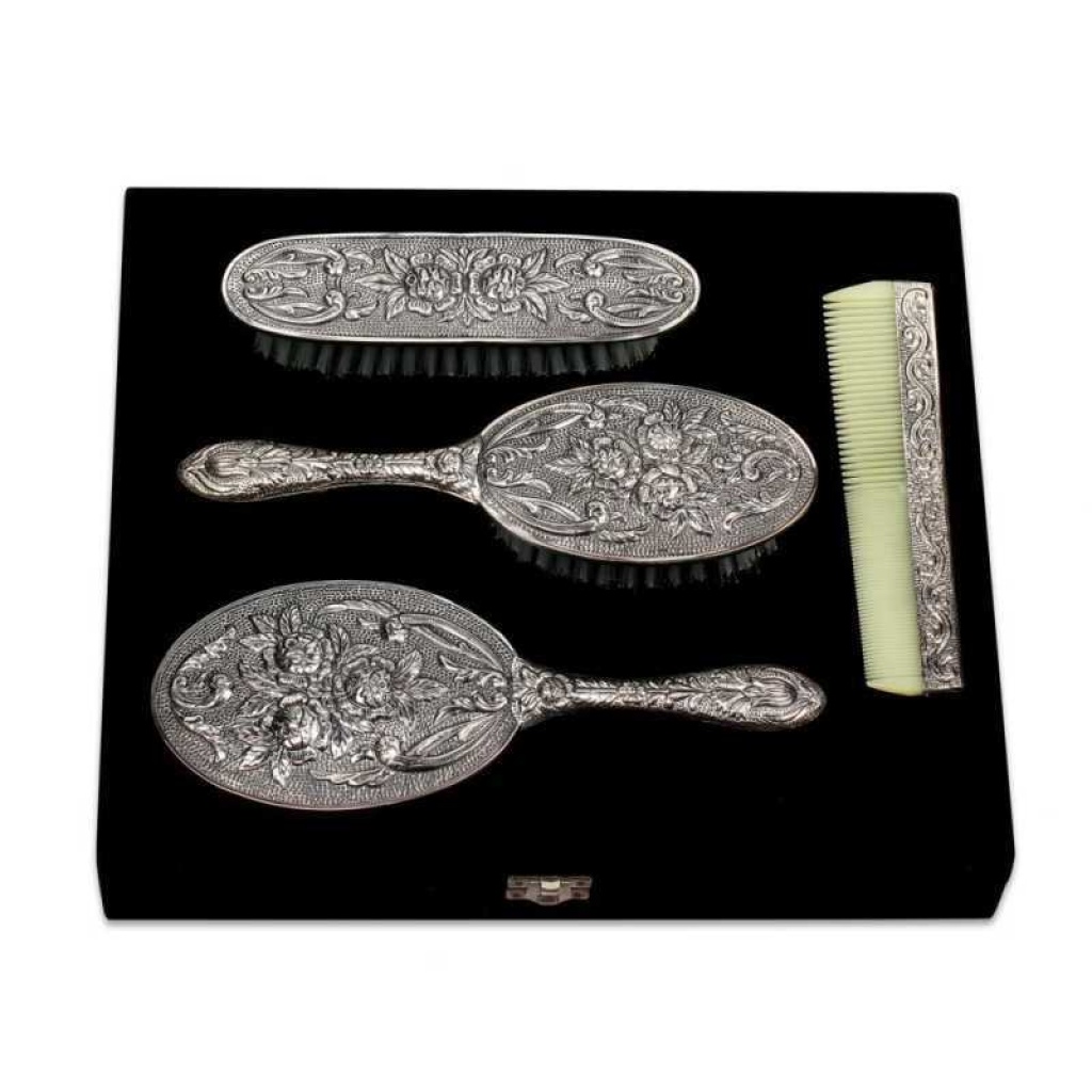 Gümüş Ayna Tarak Fırça Takımı - 4 Parça