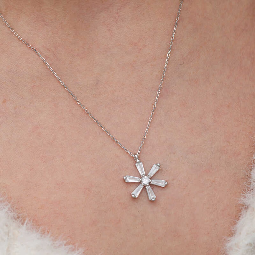 Gümüş Baget Taşlı Çiçek Kadın Kolye