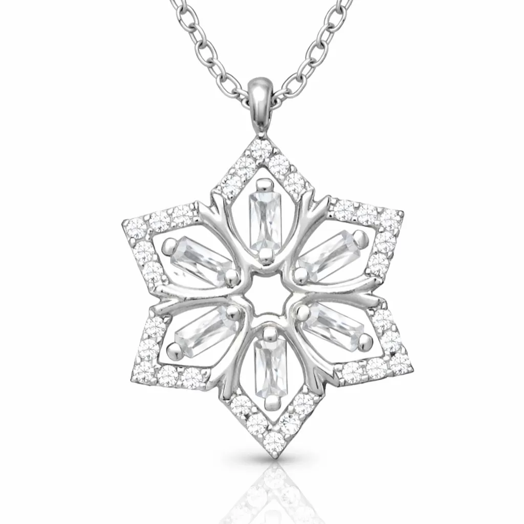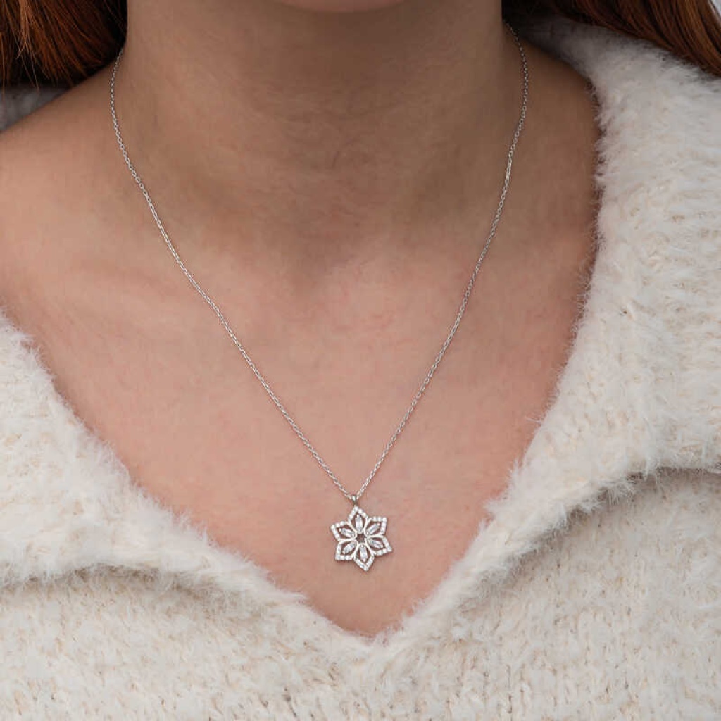 Gümüş Baget Taşlı Çiçek Kadın Kolye
