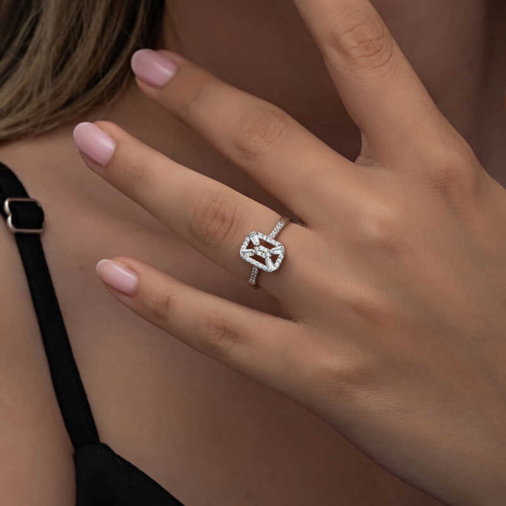 Gümüş Baget Taşlı Kadın Yüzük