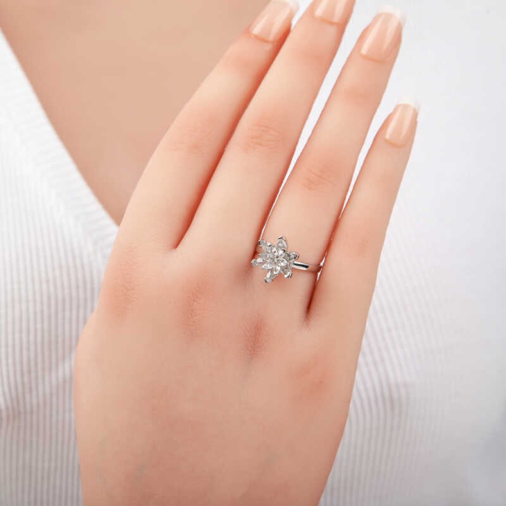 Gümüş Beyaz Taşlı Lotus Çiçeği Kadın Yüzük