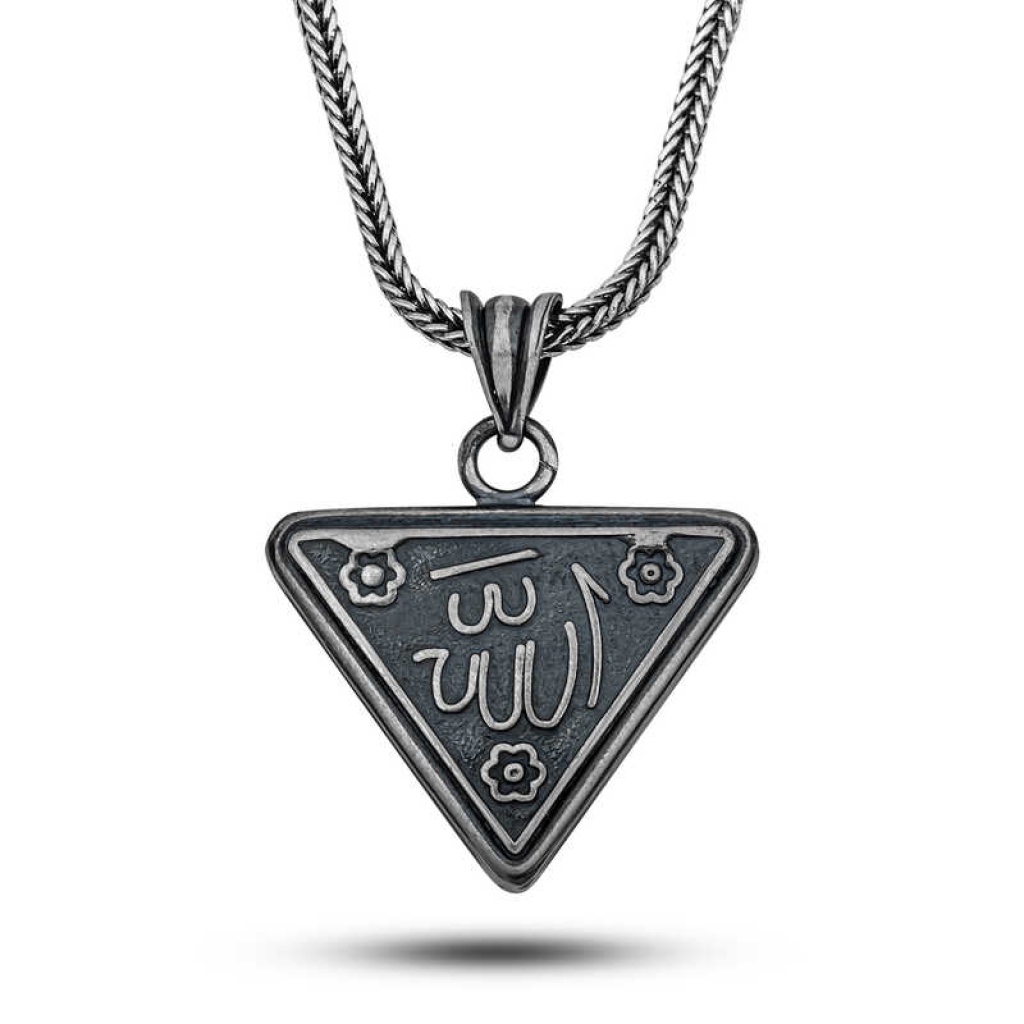 Gümüş Çiçek Motifli Allah Yazılı Cevşen Kolye
