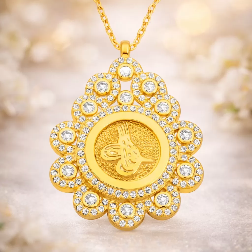 Gümüş Damla Çerçeveli Tuğra Bayan Kolye
