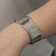 Şık ve fantezi görünümü seven kadınlar için ideal bir seçenektir. Koleksiyonlarda; gösteriş ve şıklığın peşinde olan kadınlar için tamamen el işçiliğiyşe yapılmış bu bilezik her zevke ve konsepte uygun modeli ile sizleri bekliyor. Bu şık modeli; doğum günü hediyesi, sevgililer günü hediyesi olarak özel günlerde tercih edebilirsiniz. Eskitme desenli bayan bilezik modeli 925 ayar gümüşten imal edilmiştir. Gümüş üzerine rodyum kaplama yapılmıştır. Rodyum kaplama yapılan gümüş bayan bilezik modelleri parlaklığını uzun süre muhafaza eder, oksitlenmesi gecikir. Tüm gümüş bayan bilezikler de olduğu gibi bu gümüş eskitme desenli bayan bilezik modeli de el emeği ile üretilmiştir. Gümüş ve değerli taşlar nedeniyle belirtilen ortalama ürün ağırlığında ± %10 sapma olabilmektedir.