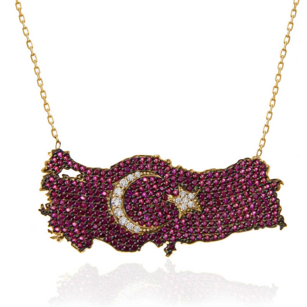 Gümüş Gold Ay Yıldız Türkiye Haritası Kadın Kolye