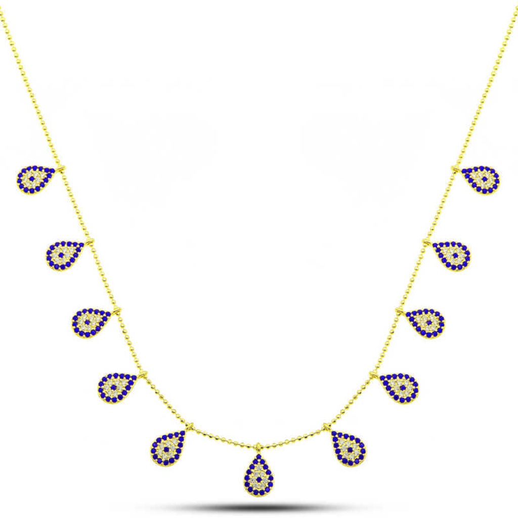 Gümüş Gold Damla Nazarlı Şans Kadın Kolye