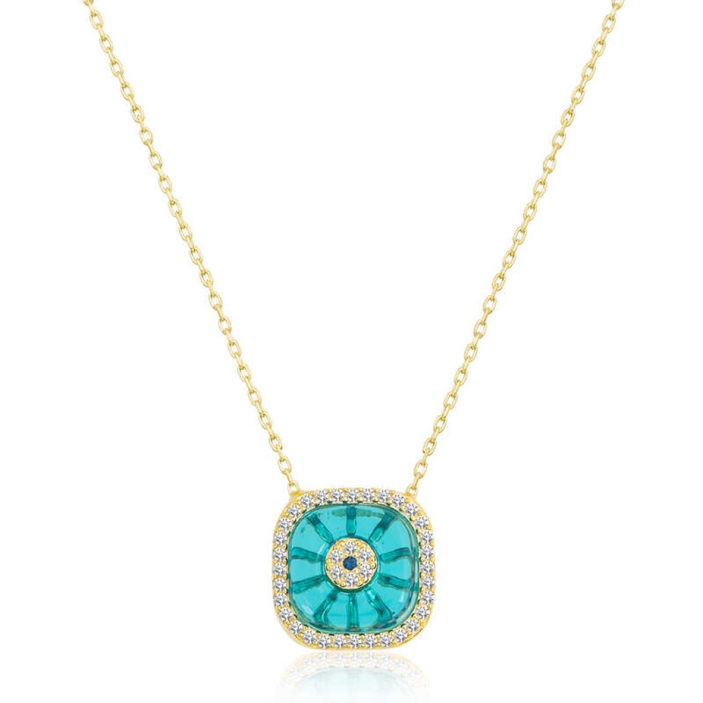 Gümüş Gold Kare Camgöz Nazar Bayan Kolye