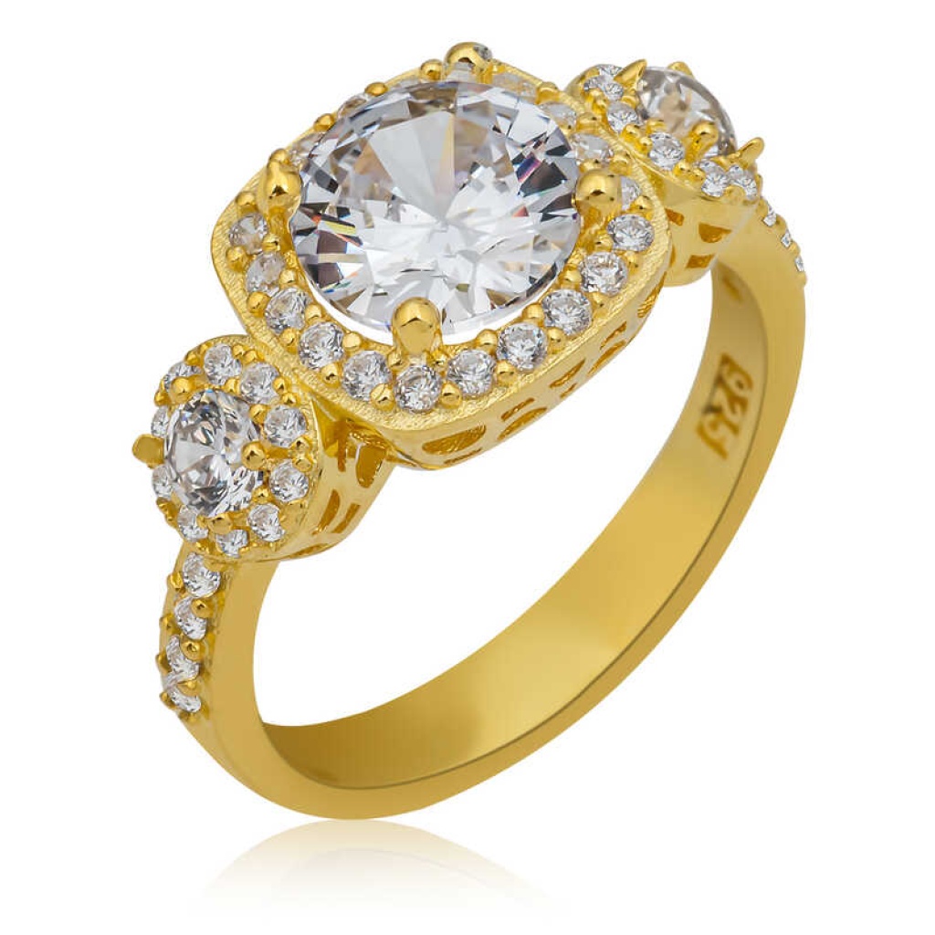 Gümüş Gold Kare Montür Tek Taş Kadın Yüzük