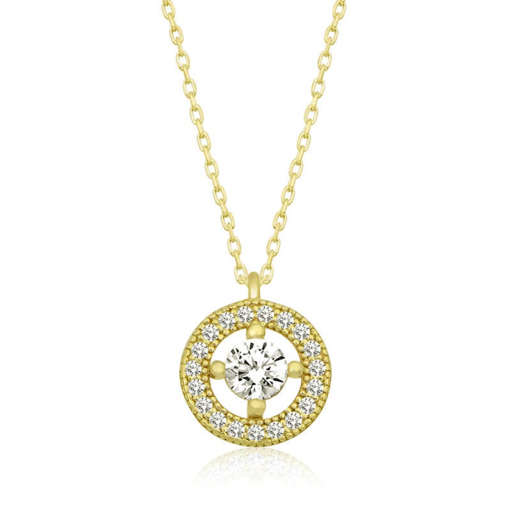 Gümüş Gold Minimal Yuvarlak Tektaş Kadın Kolye