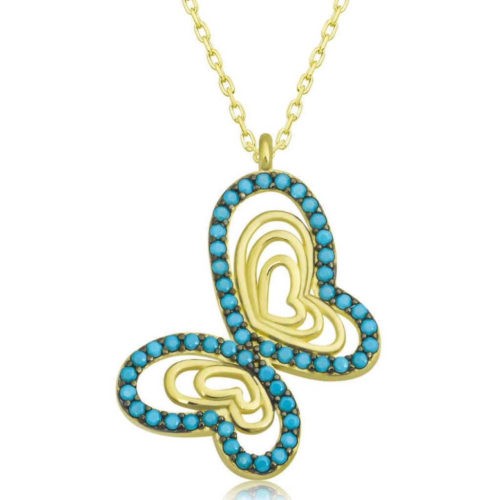 Gümüş Gold Turkuaz Taşlı Kelebek Kadın