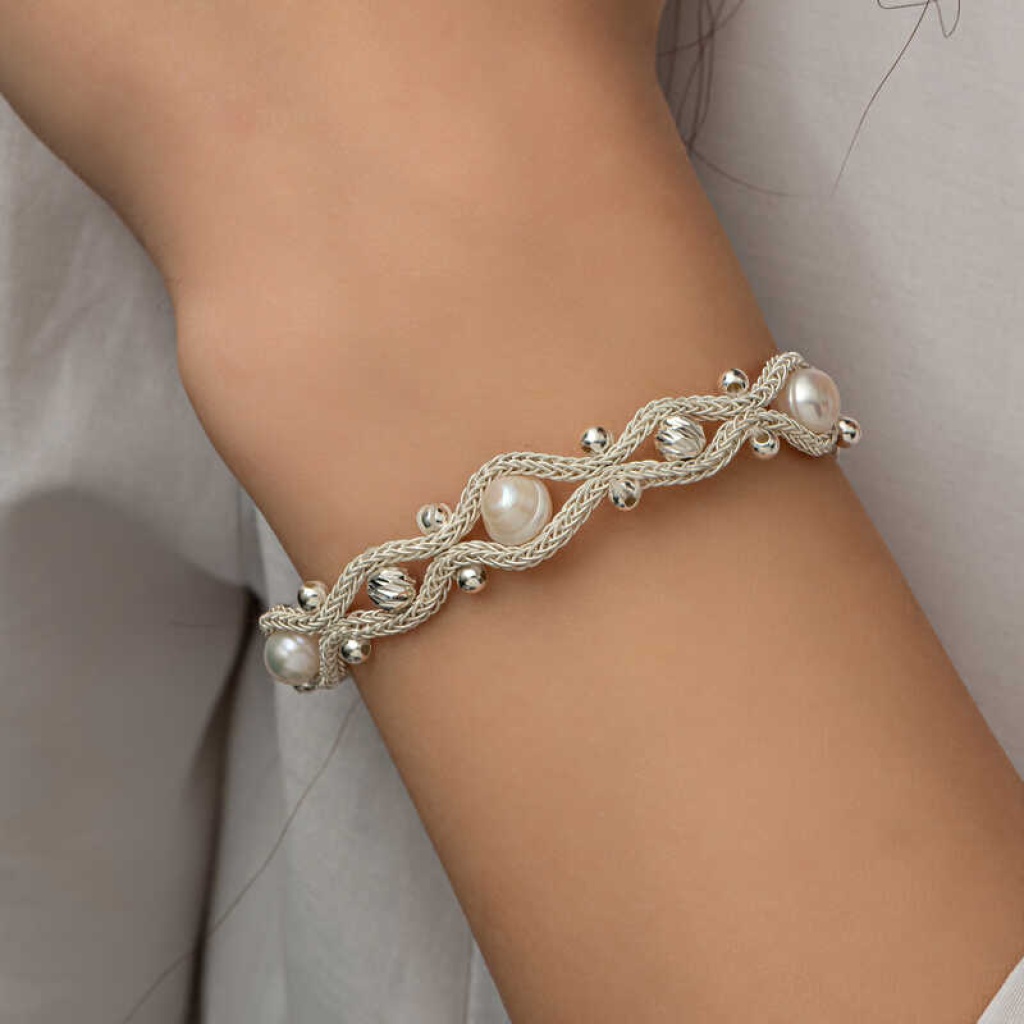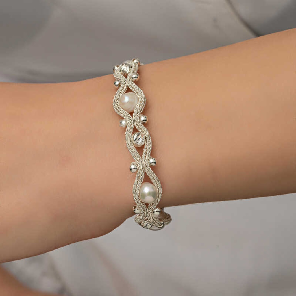 Gümüş İnci Kazaziye Örgü Bileklik