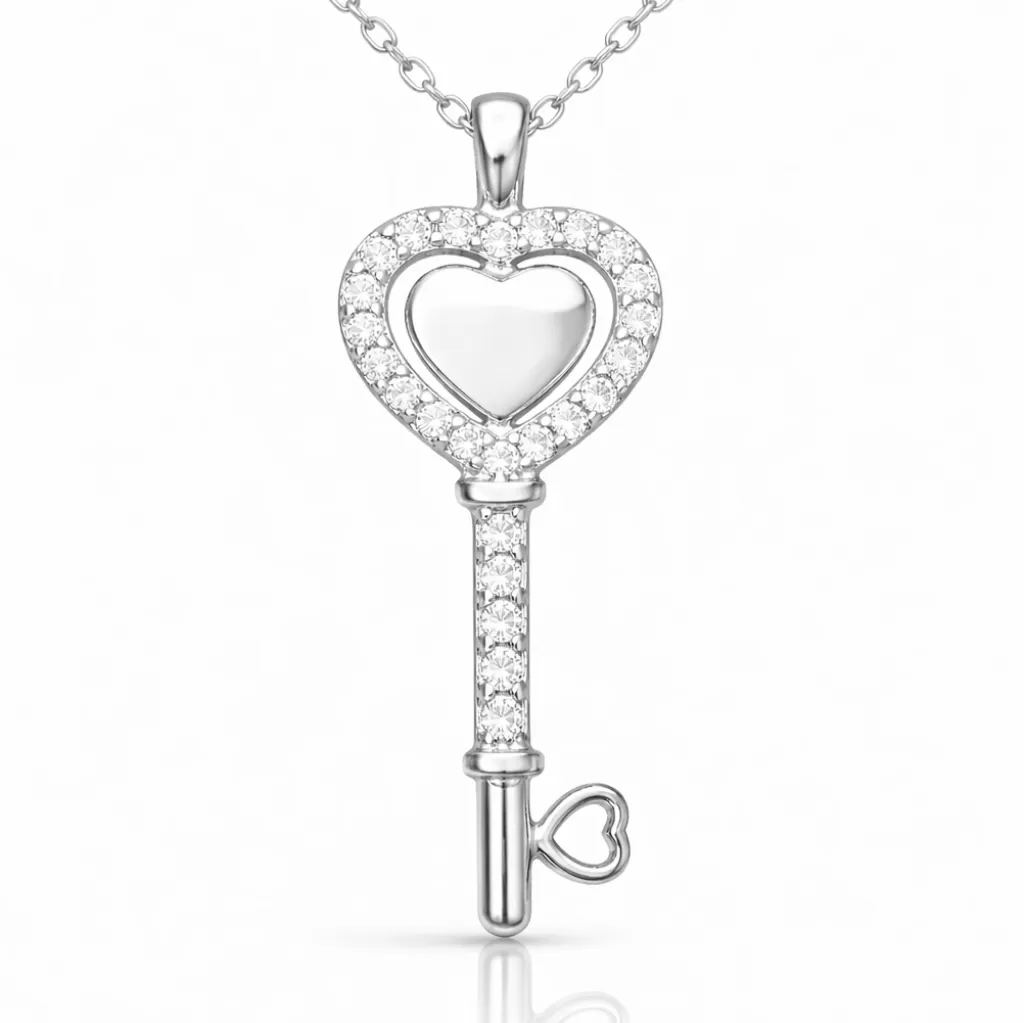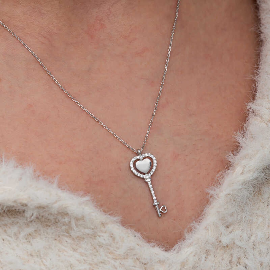 Gümüş Kalpli Anahtar Kadın Kolye