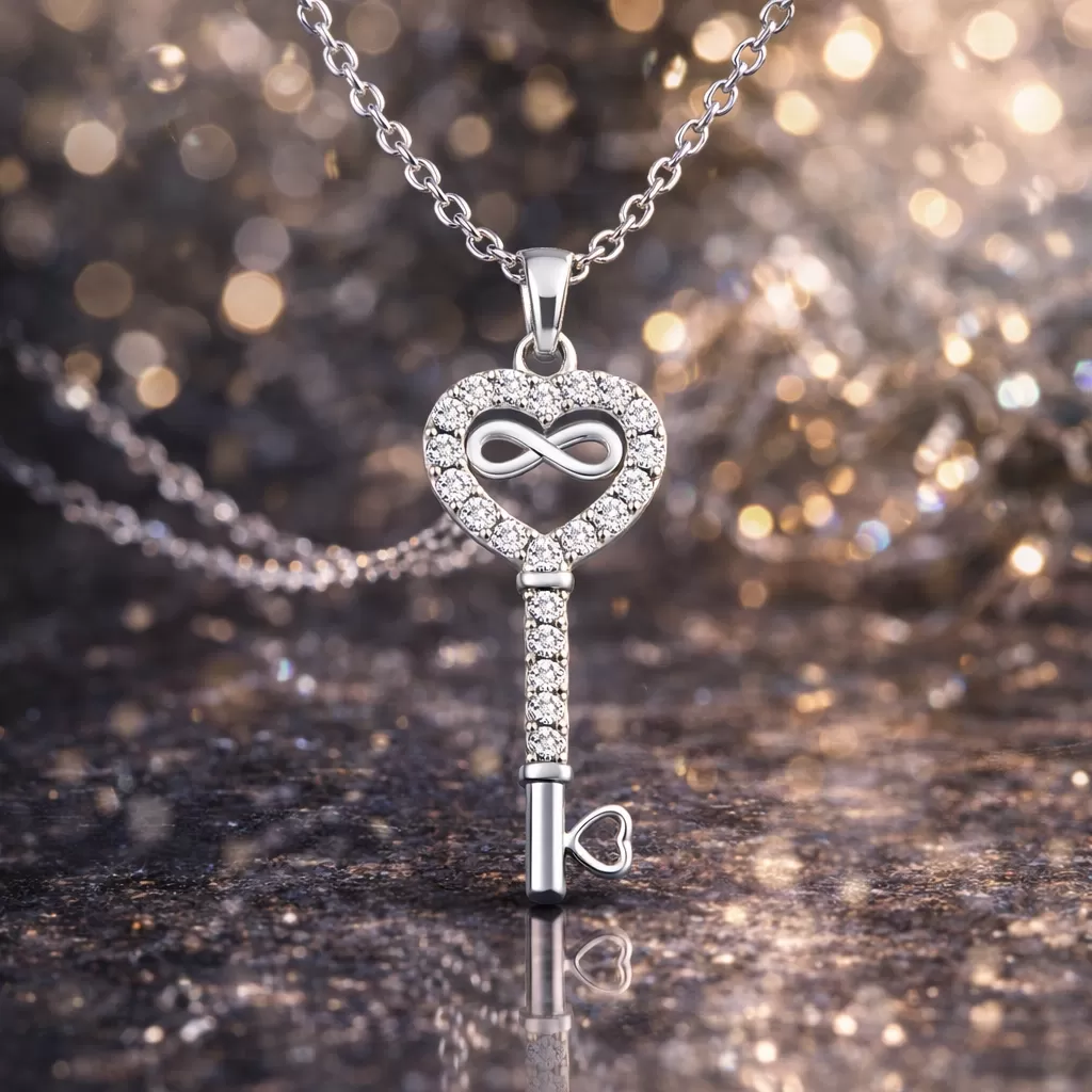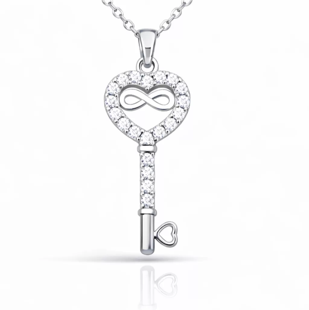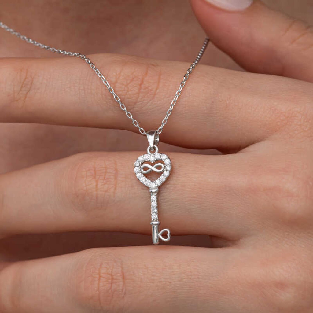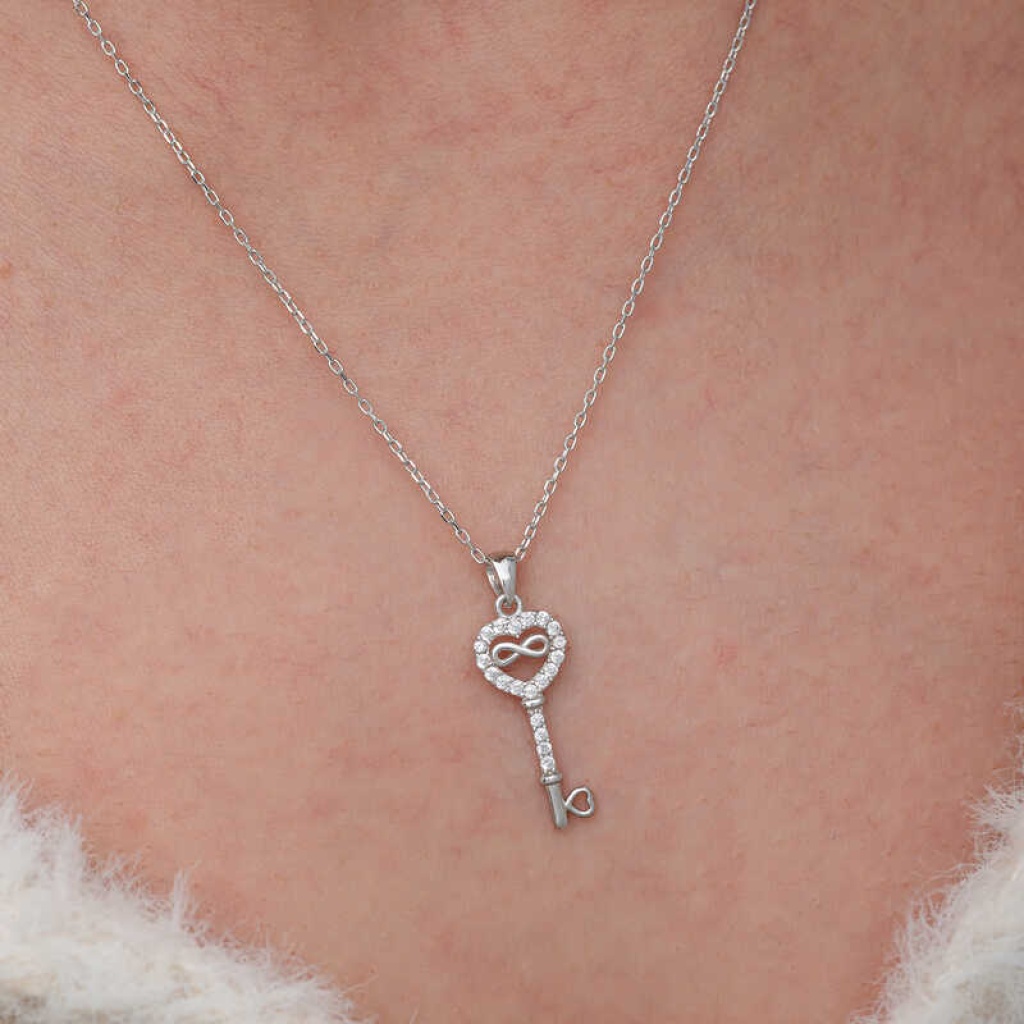 Gümüş Kalpli Sonsuzluk Anahtar Kadın Kolye