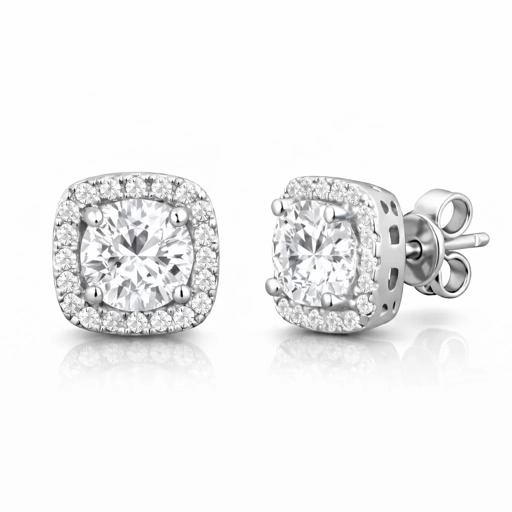 Gümüş Kare Montür Pırlanta Çivilii Modeli Küpe