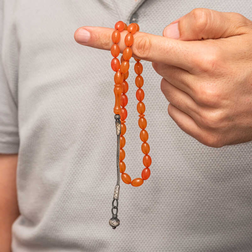 Gümüş Kazaz Püsküllü Sıkma Kehribar Tesbih