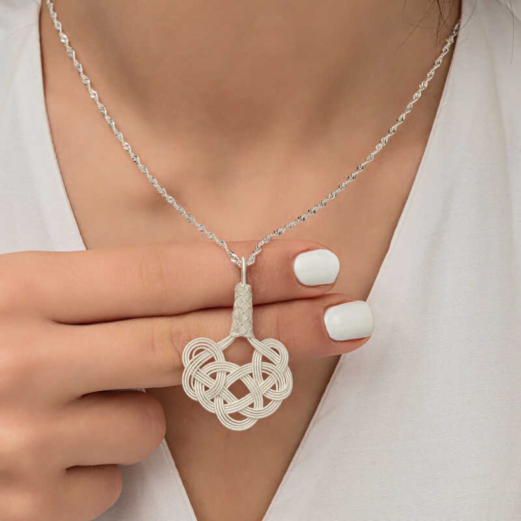 Gümüş Kazaziye Örgü Kadın Kolye