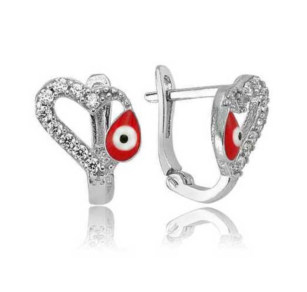 Gümüş Kırmızı Kalpli Çocuk Küpesi