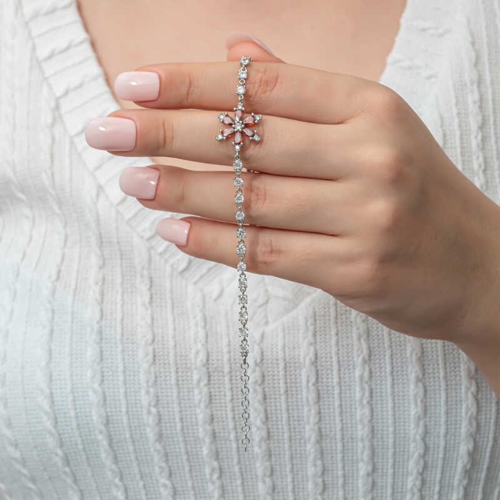 Gümüş Kırmızı Lotus Çiçeği Su Yolu Kadın Bileklik