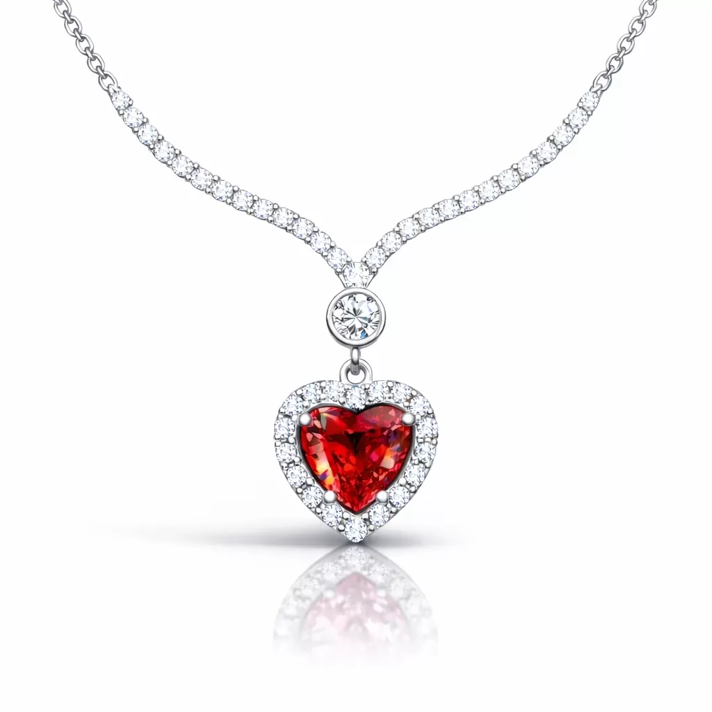 Gümüş Kırmızı Zirkon Taşlı Kalp Kadın Kolye