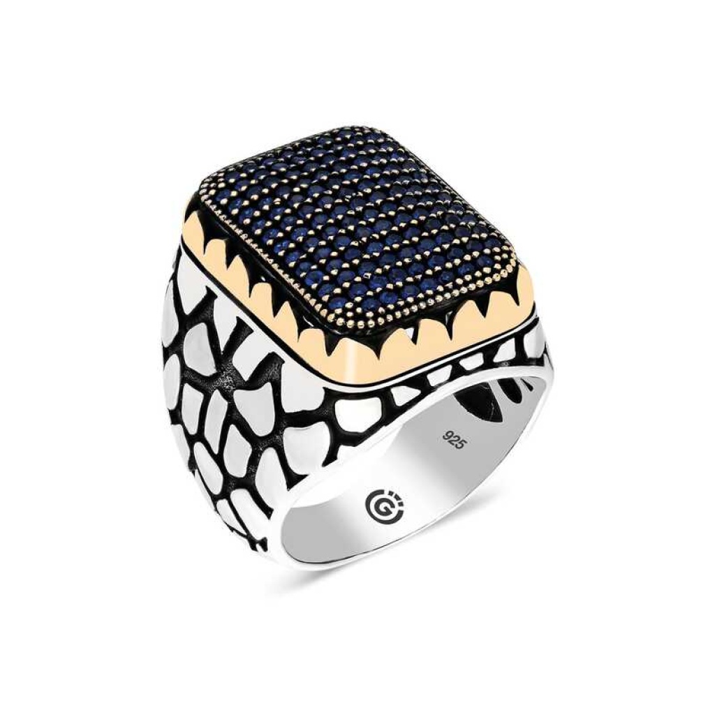 Gümüş Lacivert Zirkon Taşlı Kare Erkek Yüzük