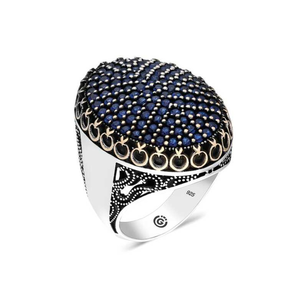 Gümüş Lacivert Zirkon Taşlı Oval Erkek Yüzük