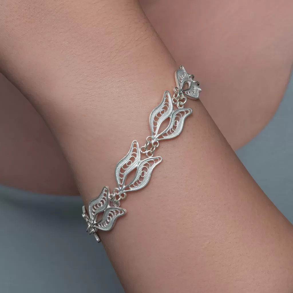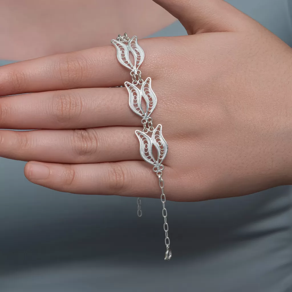 Gümüş Lale Motifli Telkari Kadın Bileklik