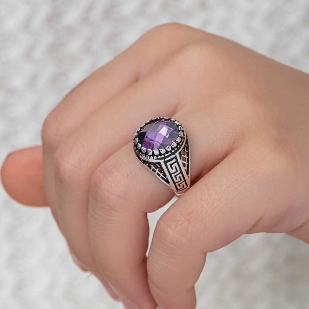 Gümüş Lila Zirkon Taşlı Çocuk Erkek Yüzük