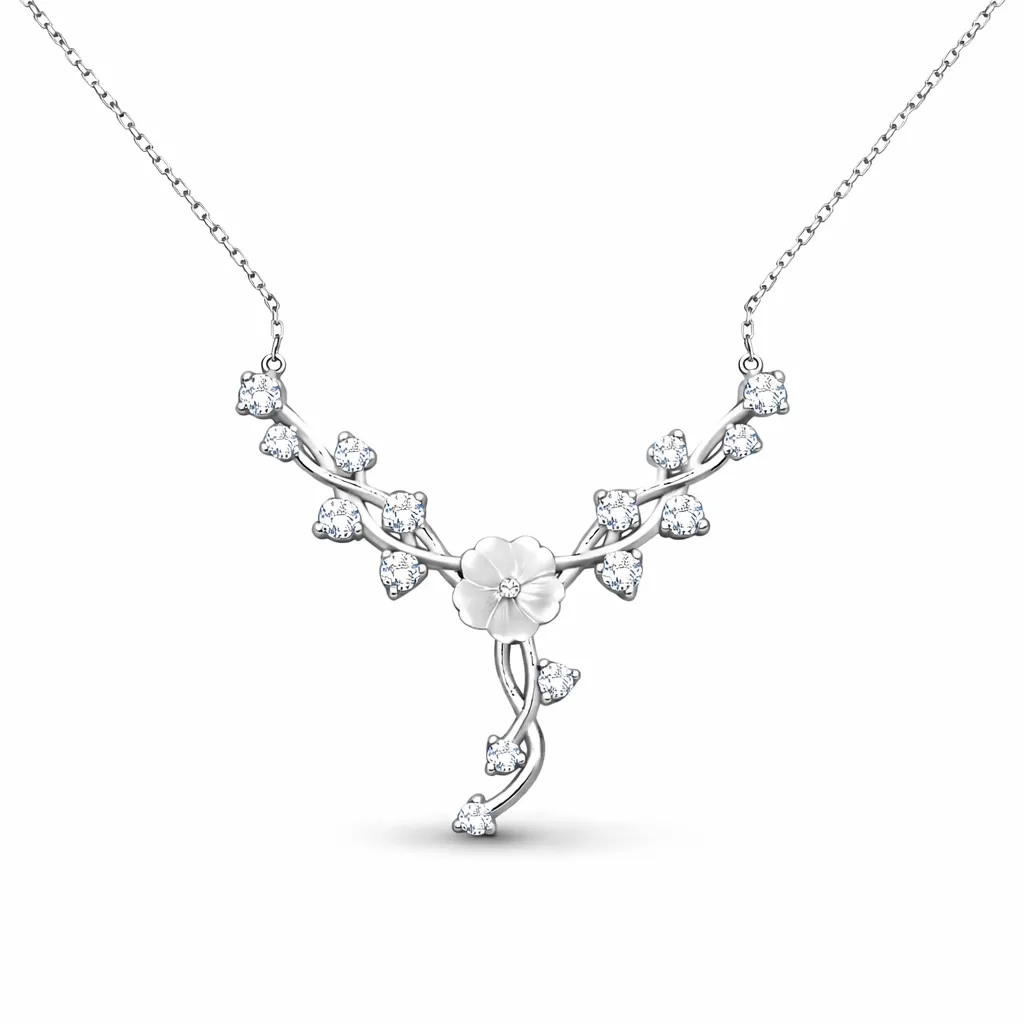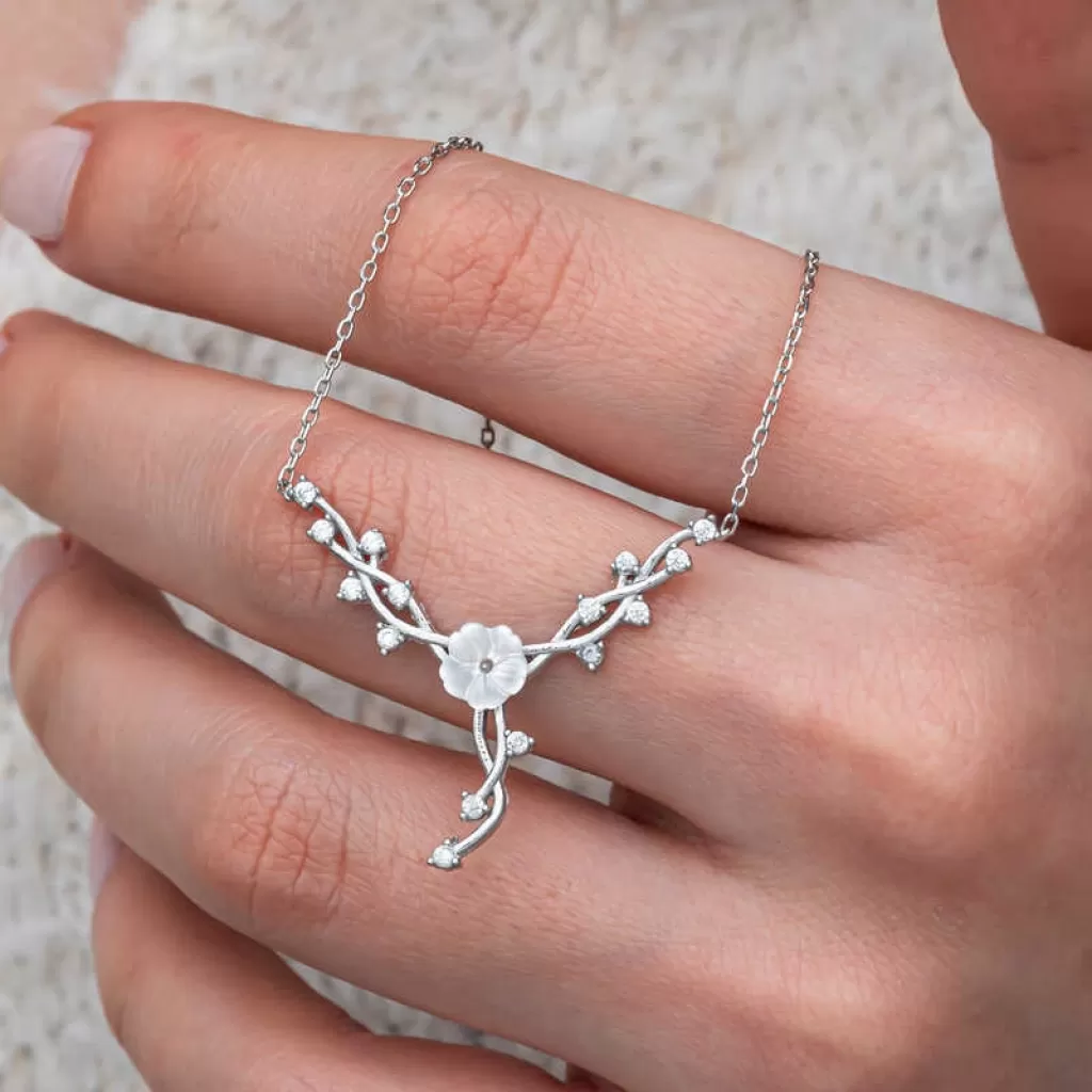 Gümüş Manolya Çiçeği Sarmaşık Kadın Kolye