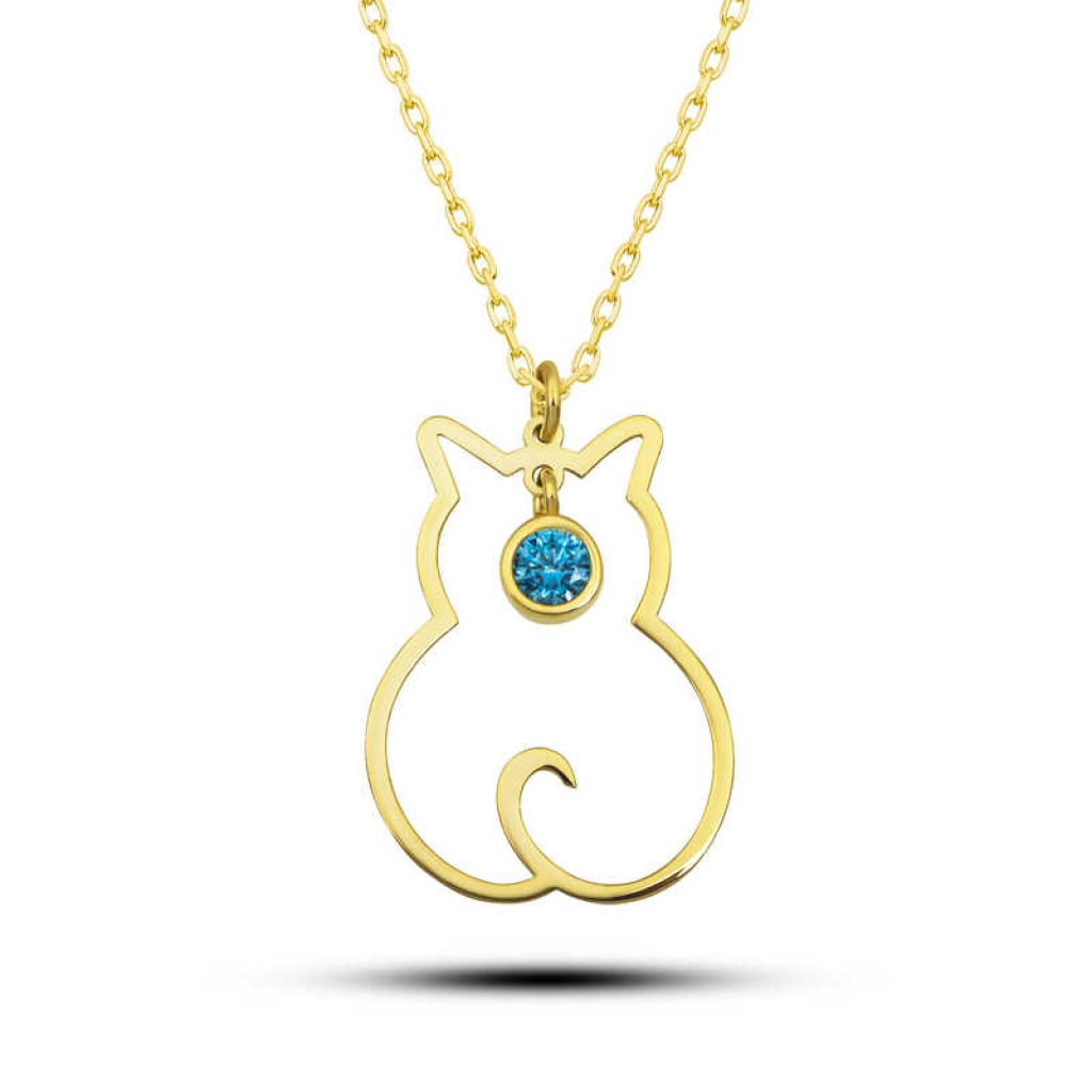 Gümüş Mart Ayı Doğum Taşı Kedi Kadın Kolye