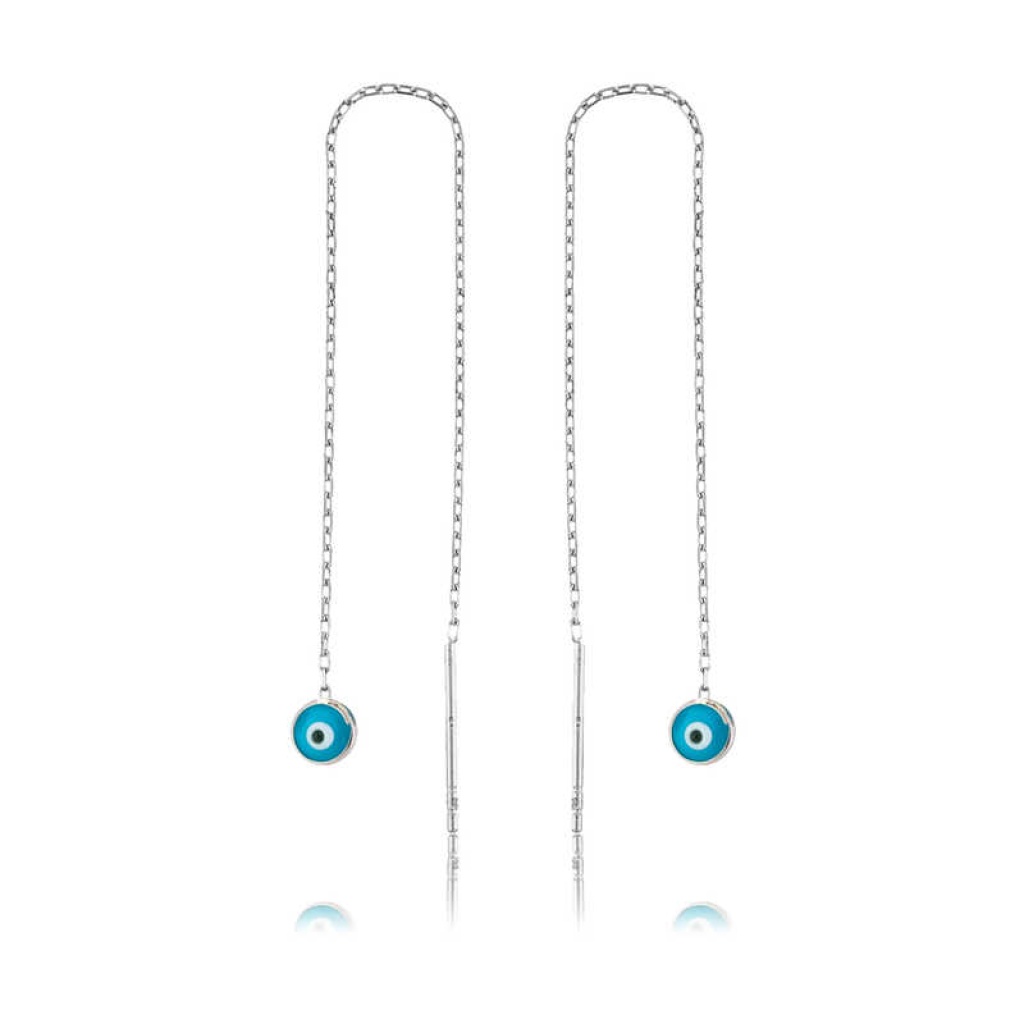 Gümüş Nazar Zincirli Küpe