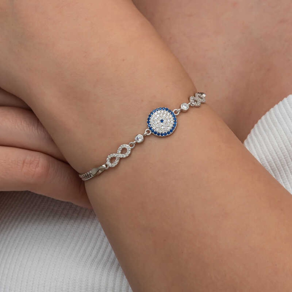 Gümüş Nazarlı Sonsuzluk Kadın Bileklik