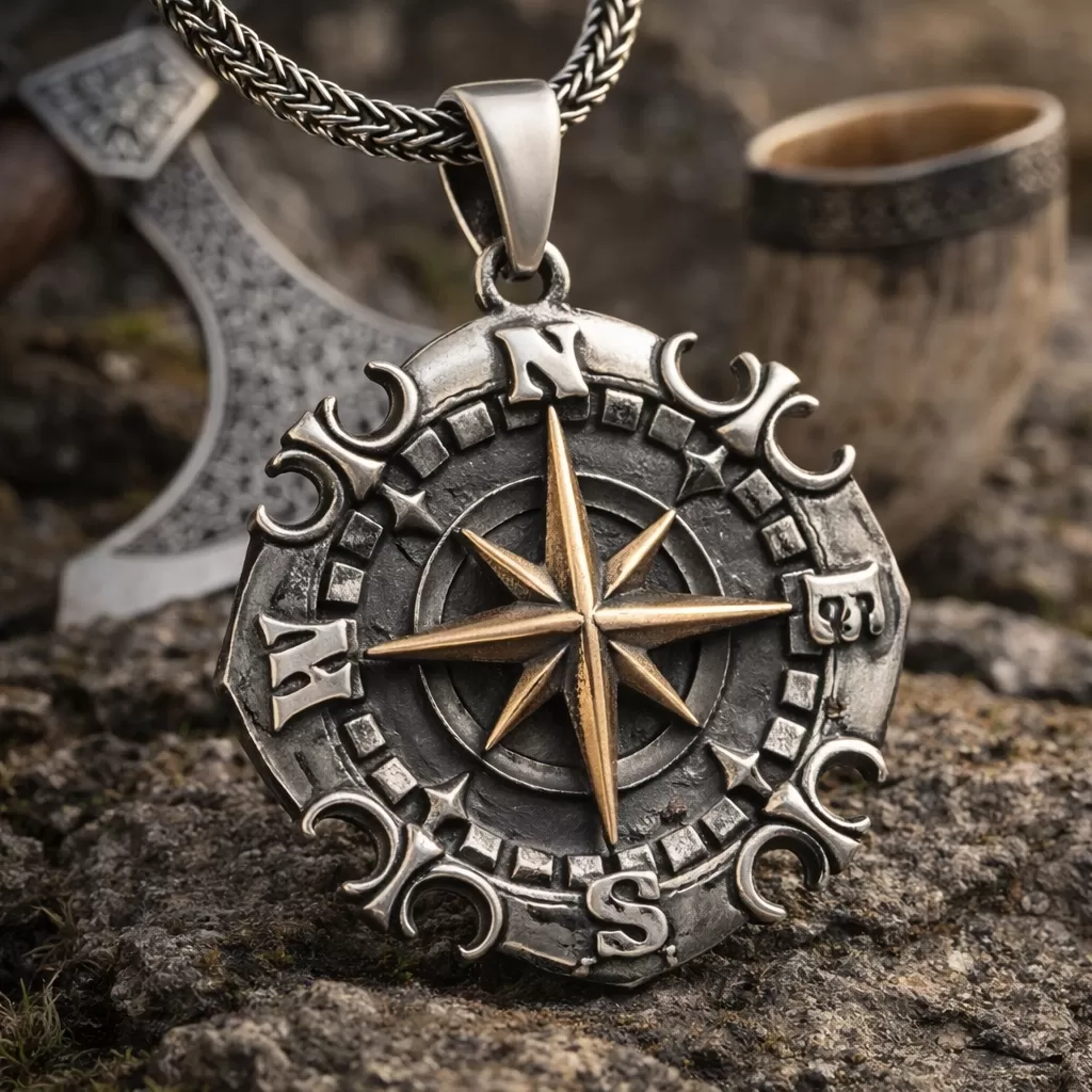 Gümüş Oksitli Pusula Erkek Kolye