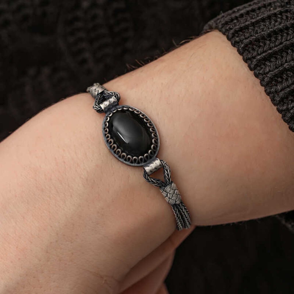 Gümüş Oniks Taşlı Kazaziye Bileklik