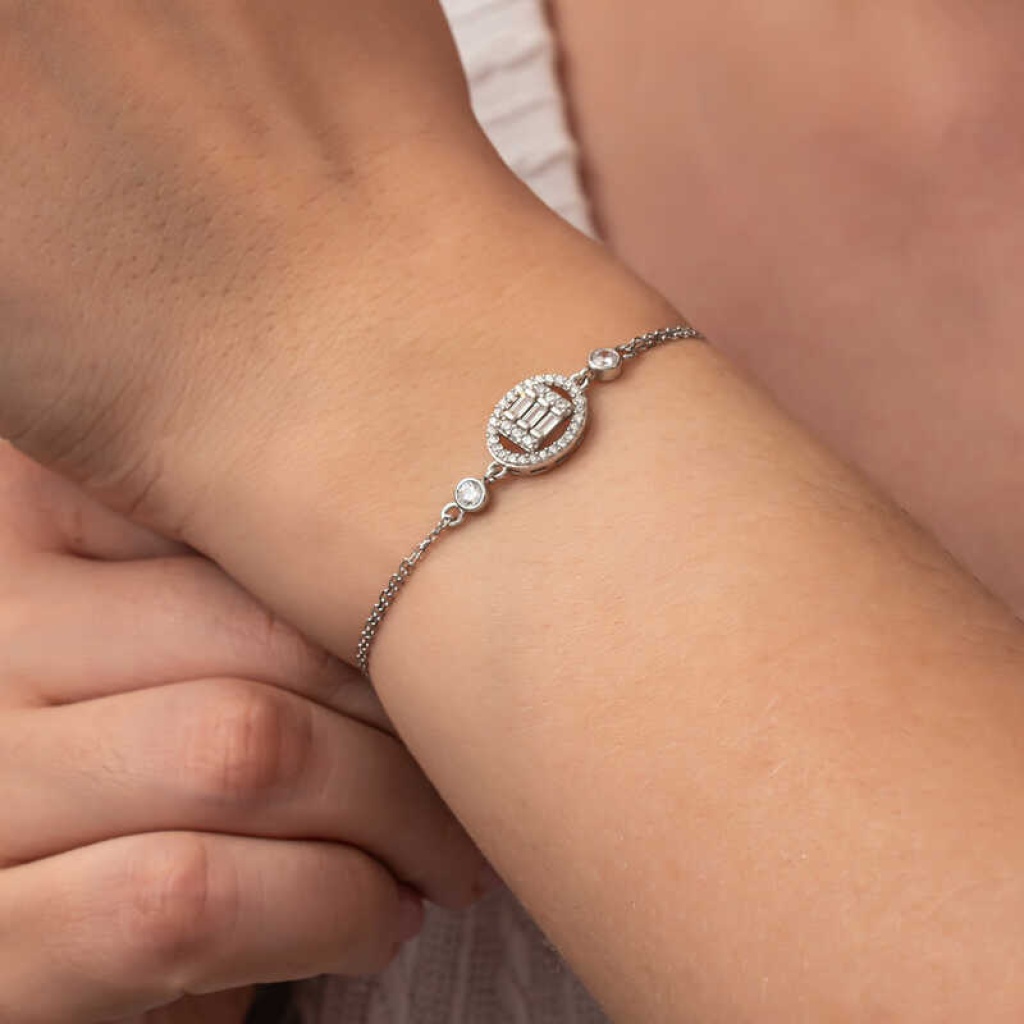 Gümüş Oval Baget Taşlı Kadın Bileklik