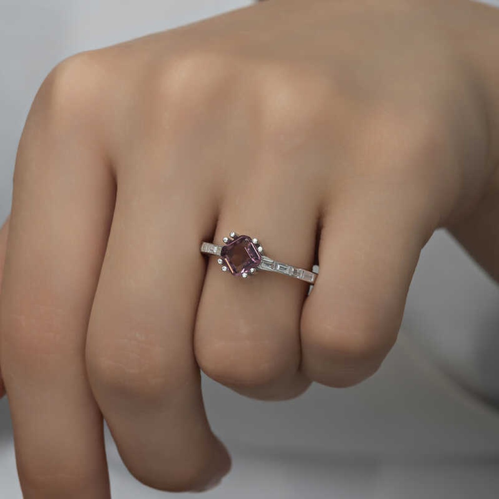 Gümüş Pembe Baget Tek Taş Kadın Yüzük