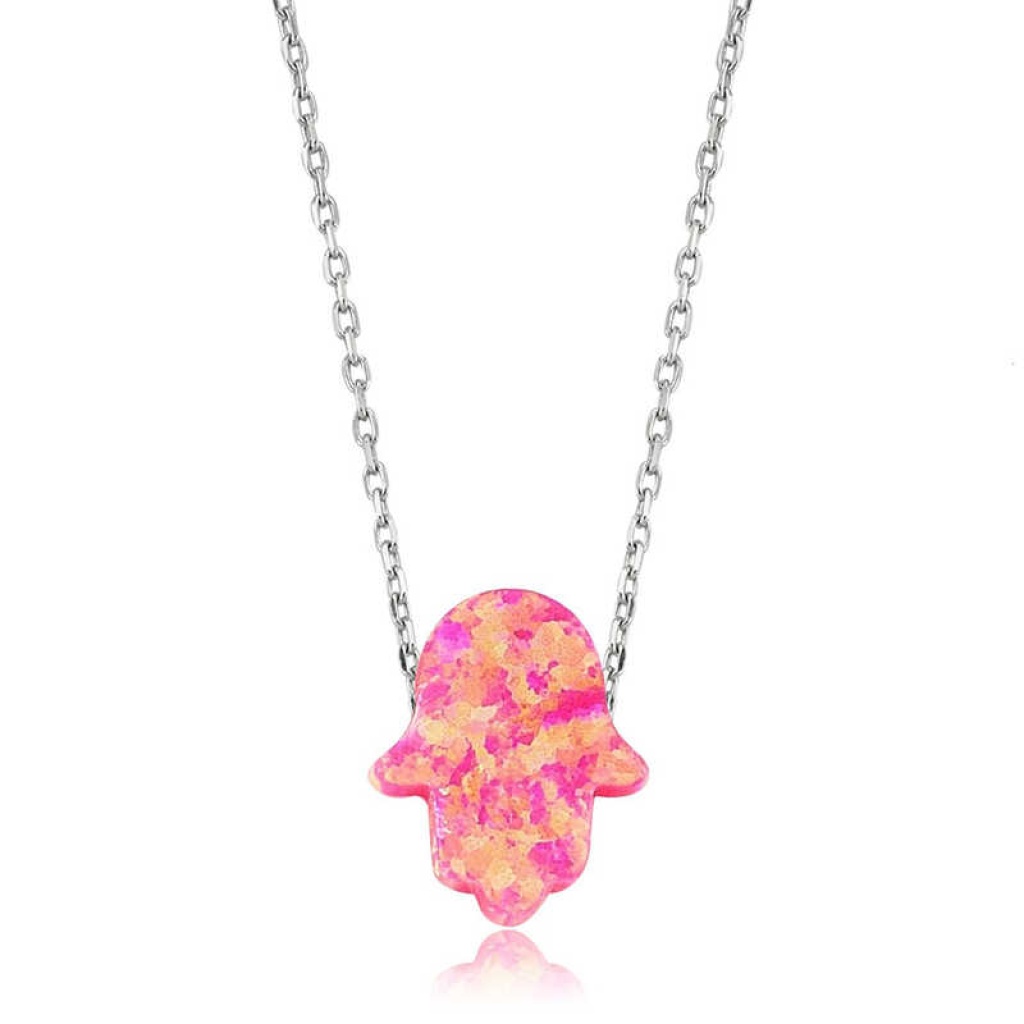 Gümüş Pembe Opal Fatma Eli Bayan Kolye