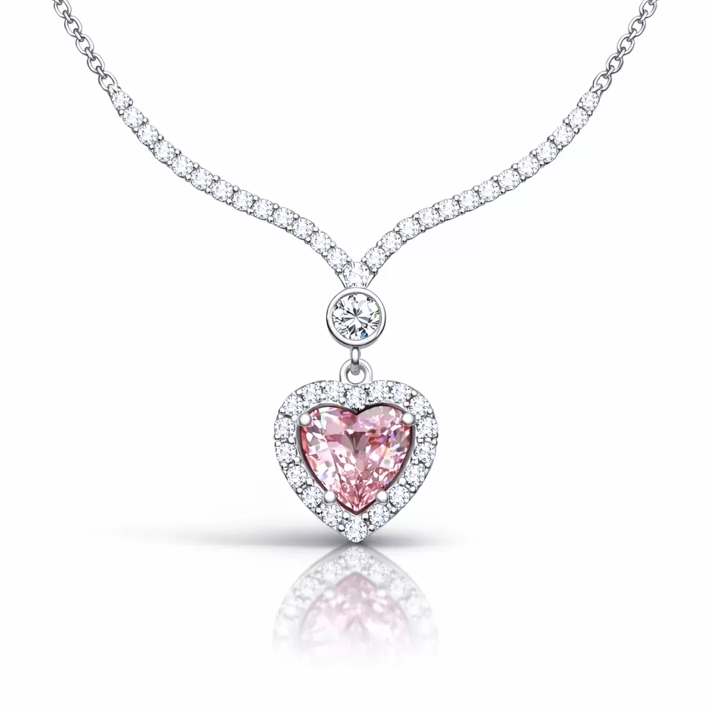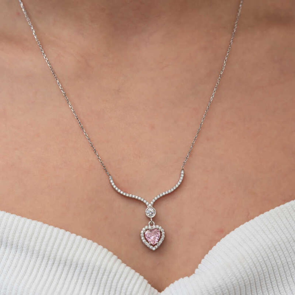 Gümüş Pembe Zirkon Taşlı Kalp Kadın Kolye