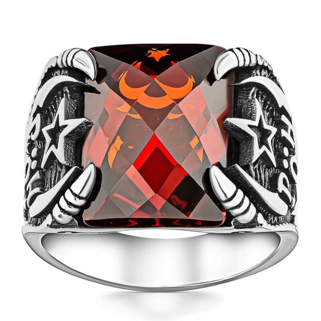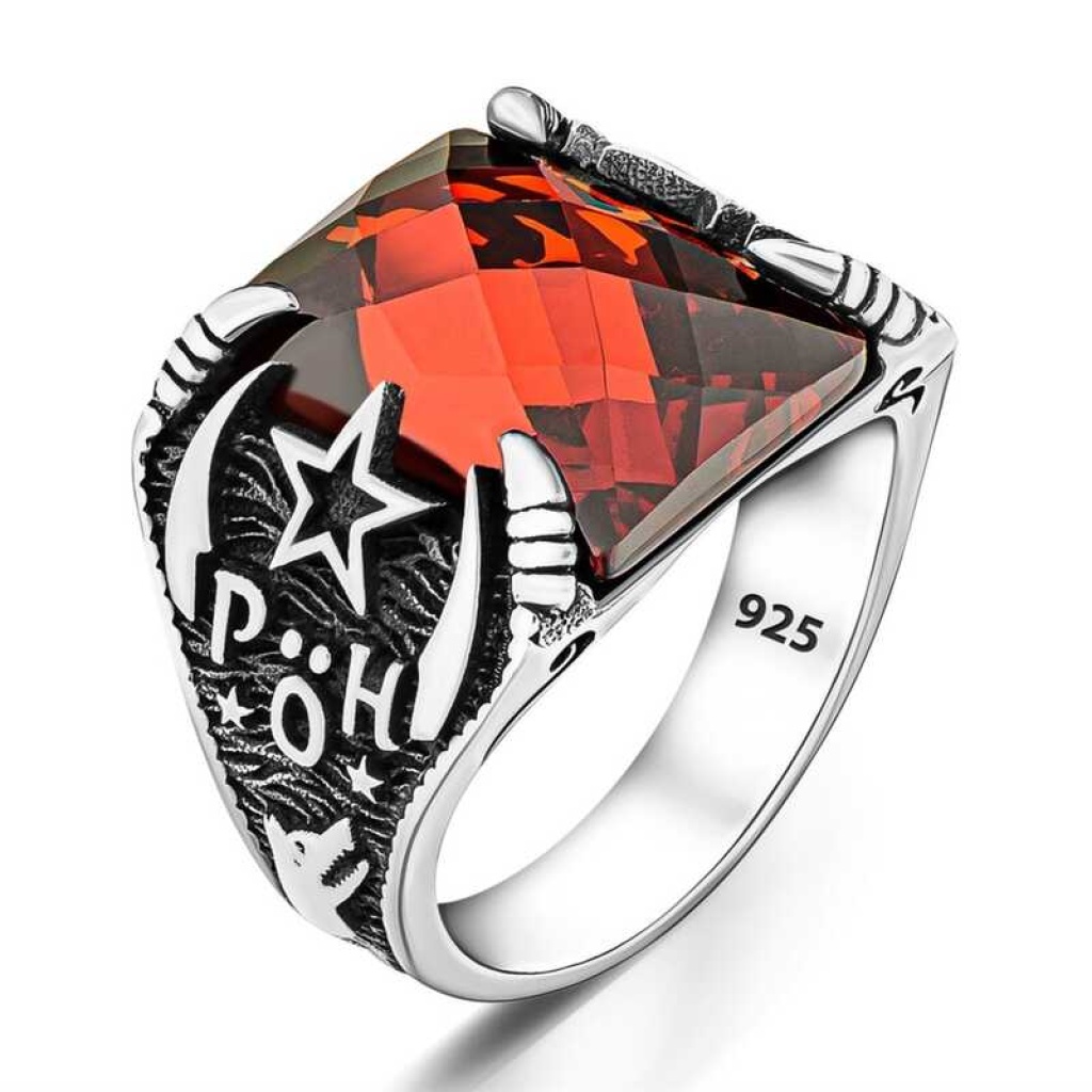 Gümüş Polis Özel Harekat Kırmızı Taşlı Erkek Yüzük
