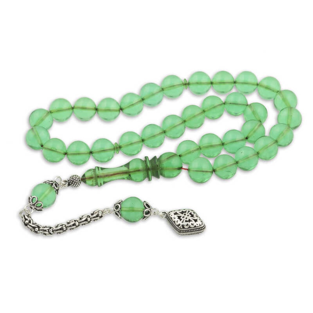 ​Gümüş Püskül Yeşil Küre Ateş Kehribar Tesbih