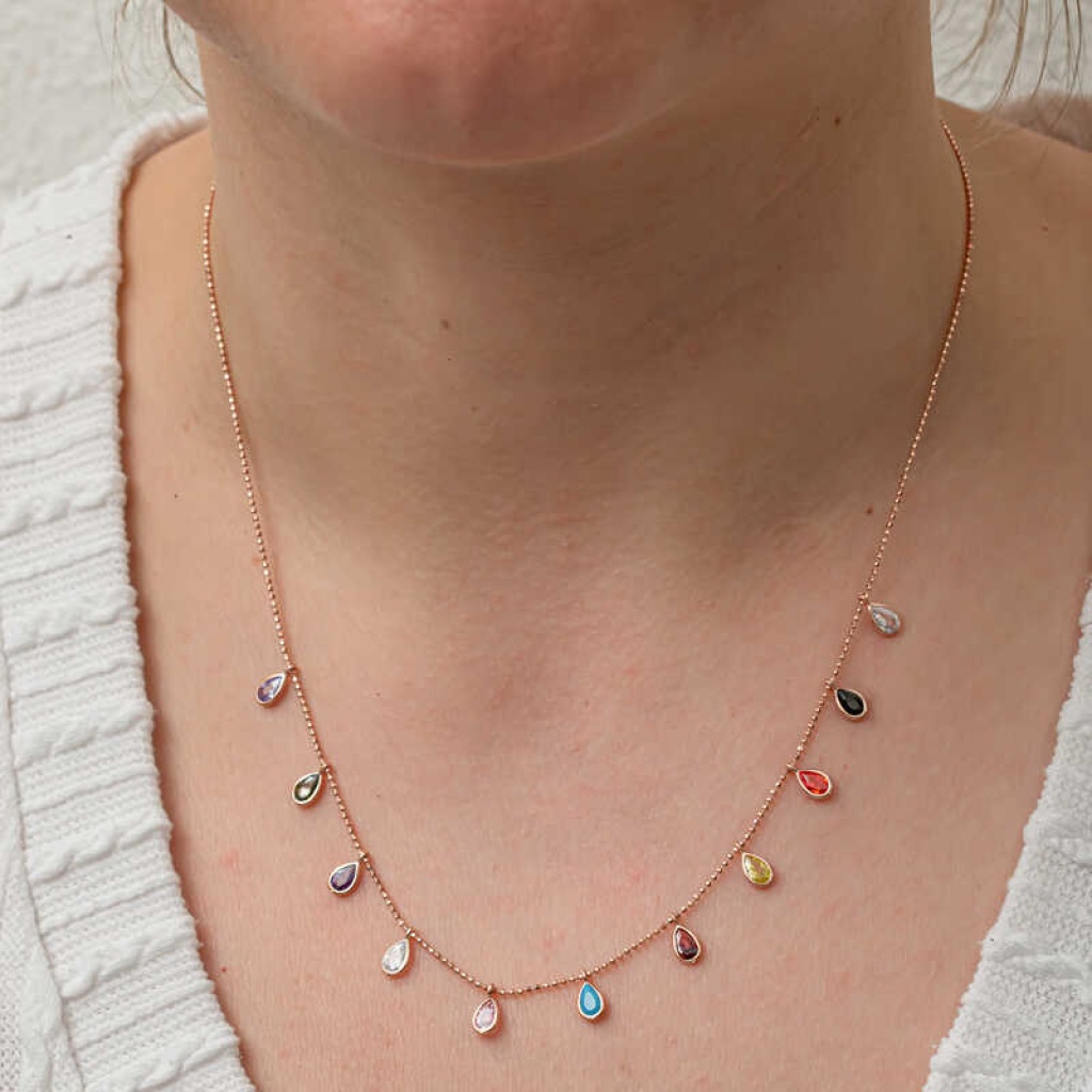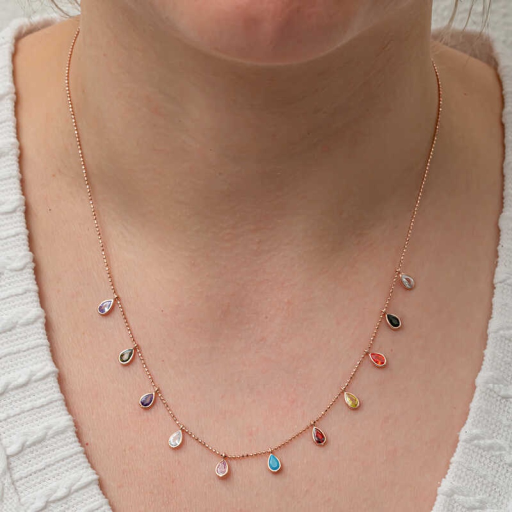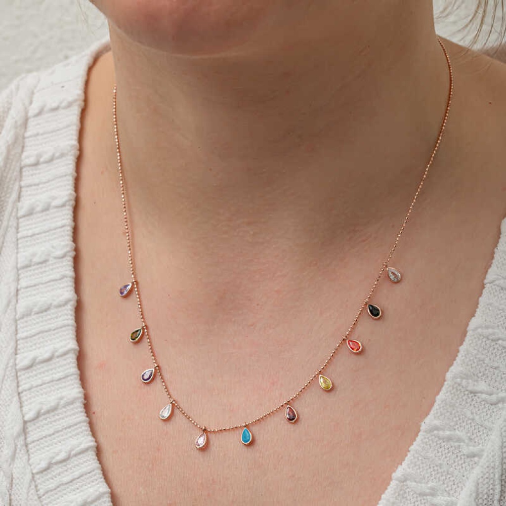 Gümüş Renkli Damla Taşlı Şans Kadın Kolye