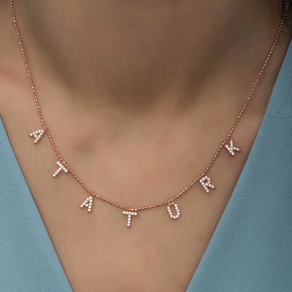 Gümüş Rose Atatürk Yazılı Bayan Kolye