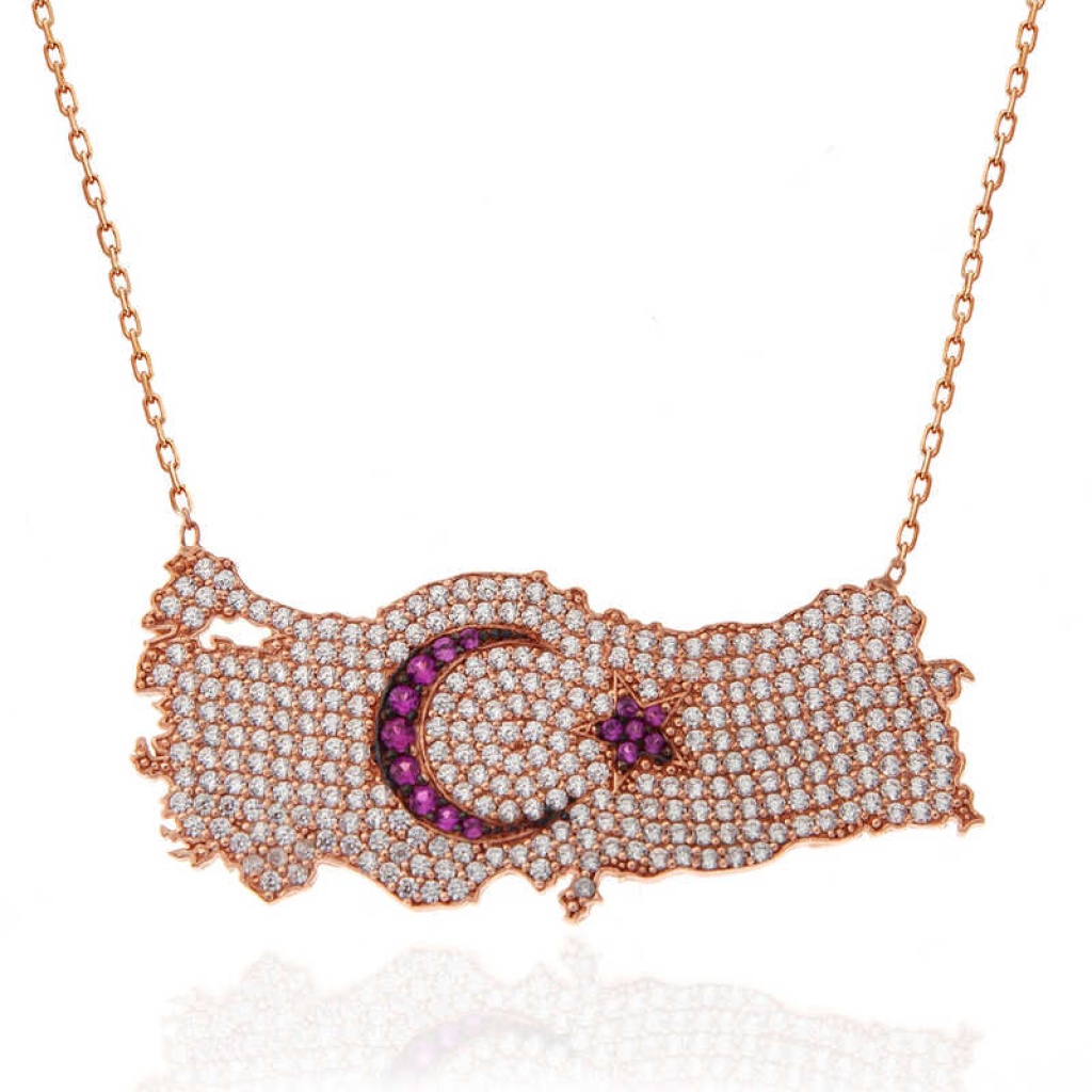 Gümüş Rose Ay Yıldız Türkiye Haritası Kadın Kolye