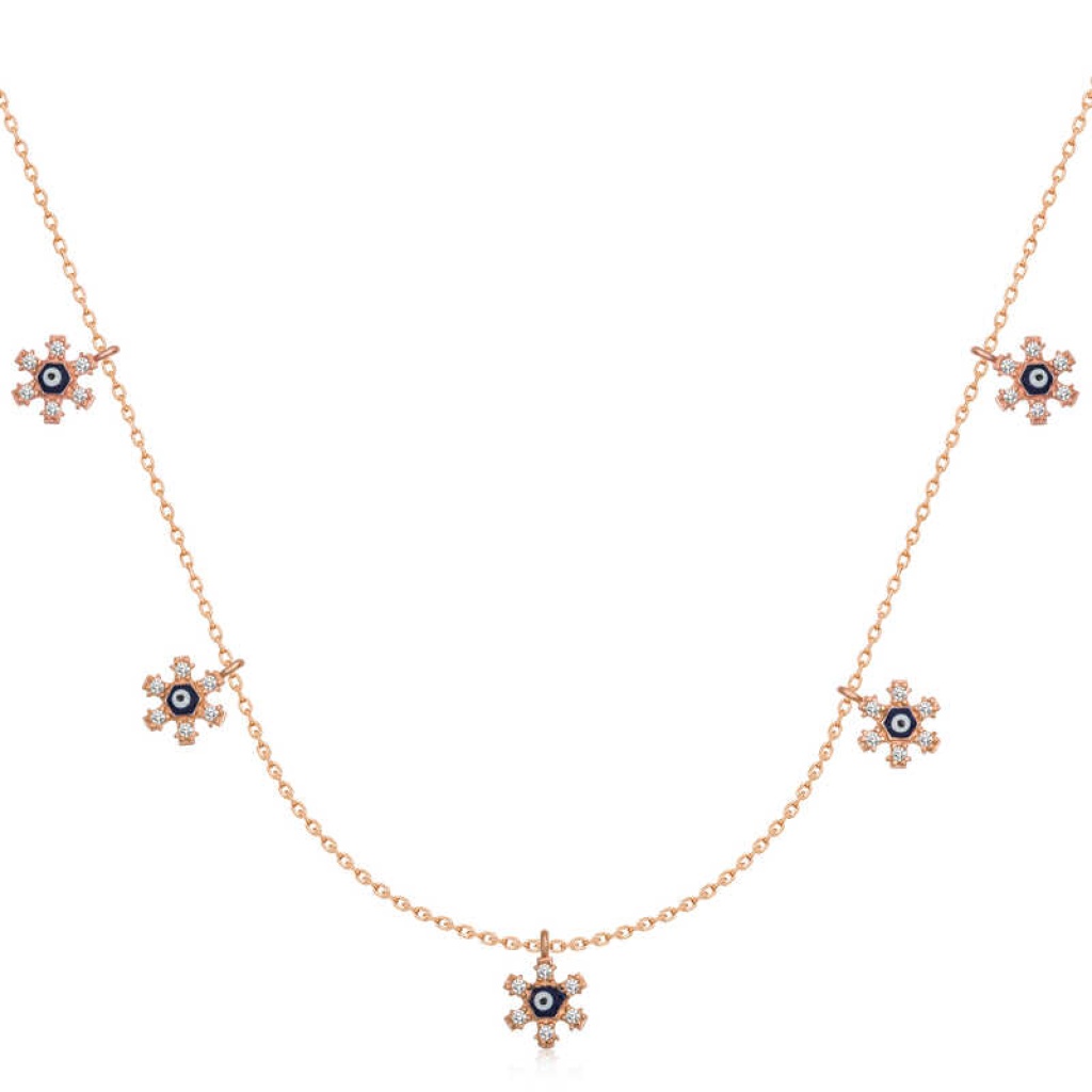 Gümüş Rose Çiçek Nazarlı Şans Kadın Kolye