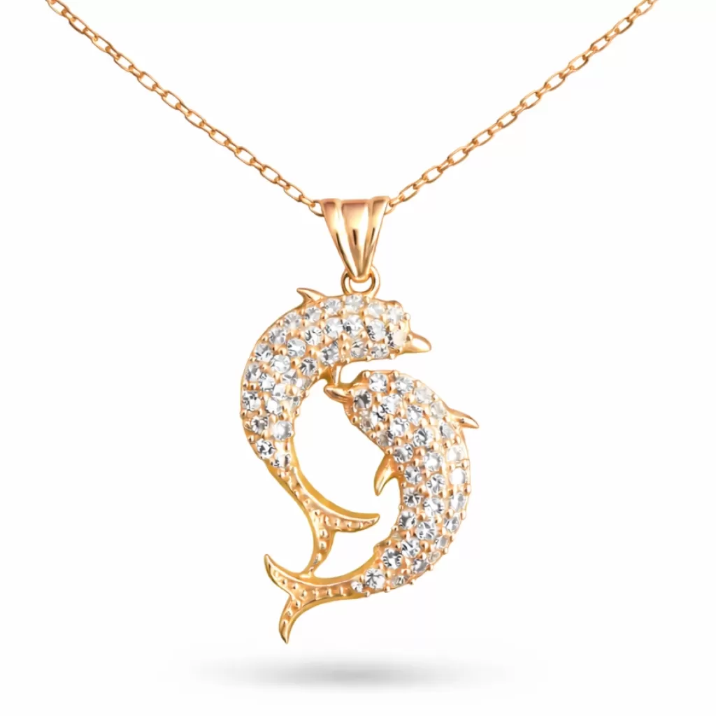 Gümüş Rose Çift Yunus Balığı Kadın Kolye