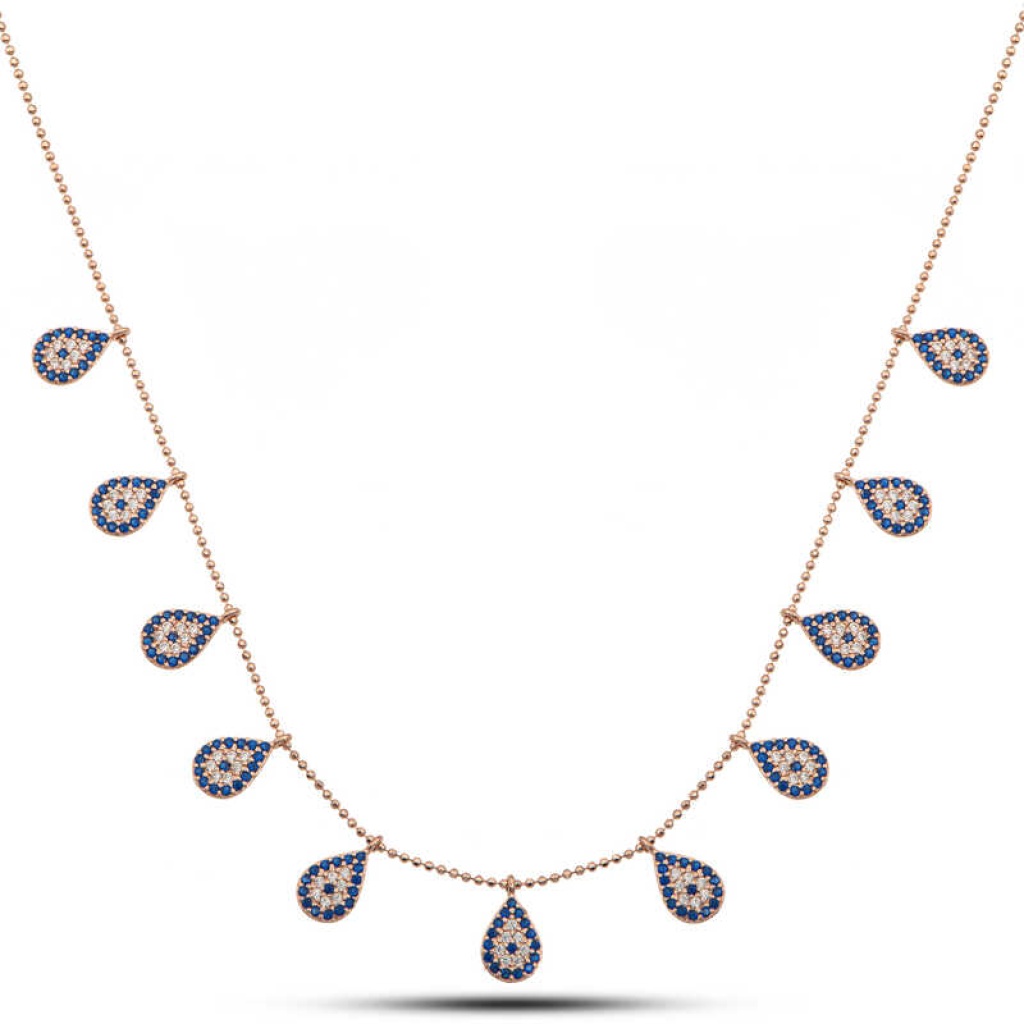 Gümüş Rose Damla Nazarlı Şans Kadın Kolye