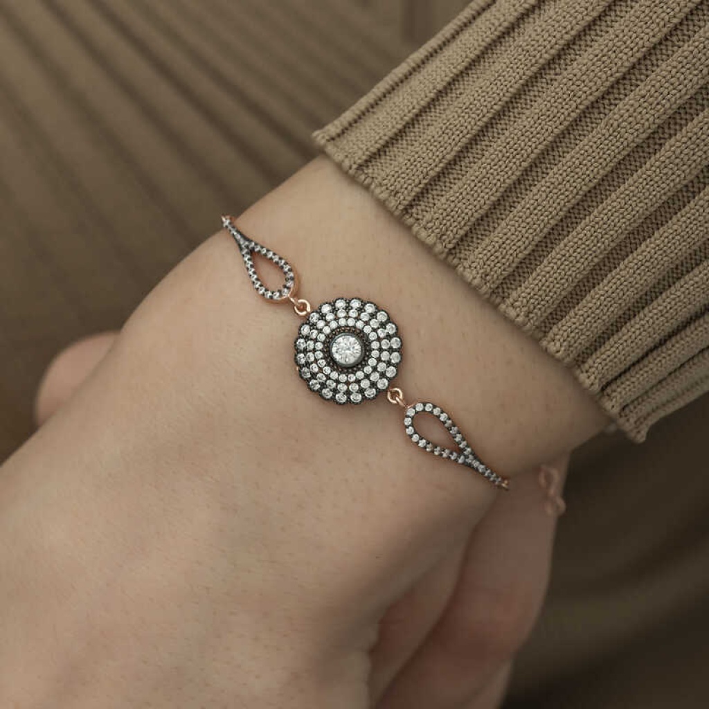Gümüş Rose Elmas Montür Çiçek Bayan Bileklik